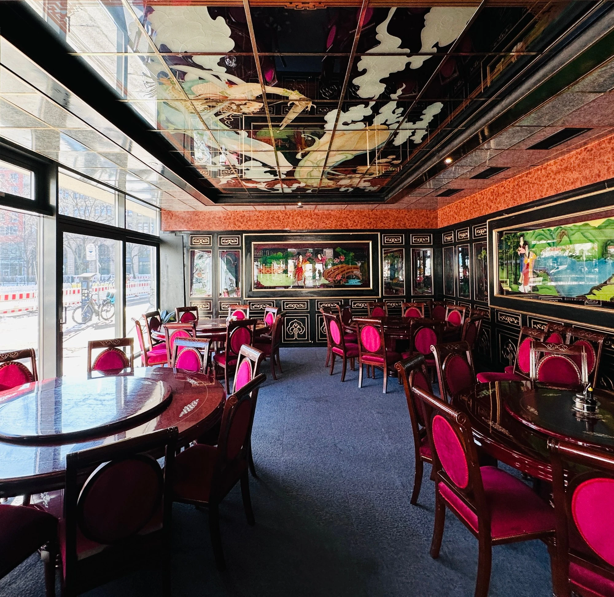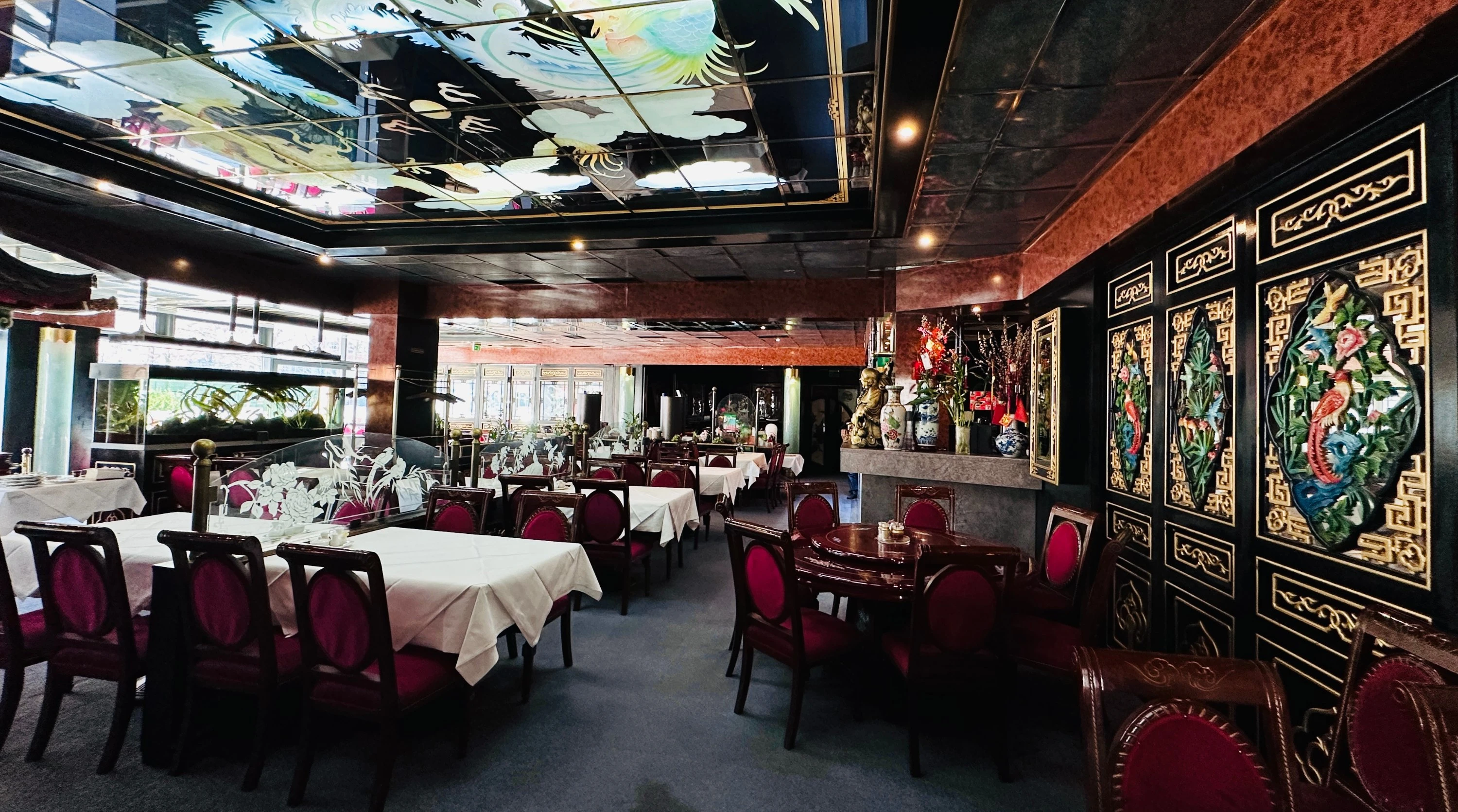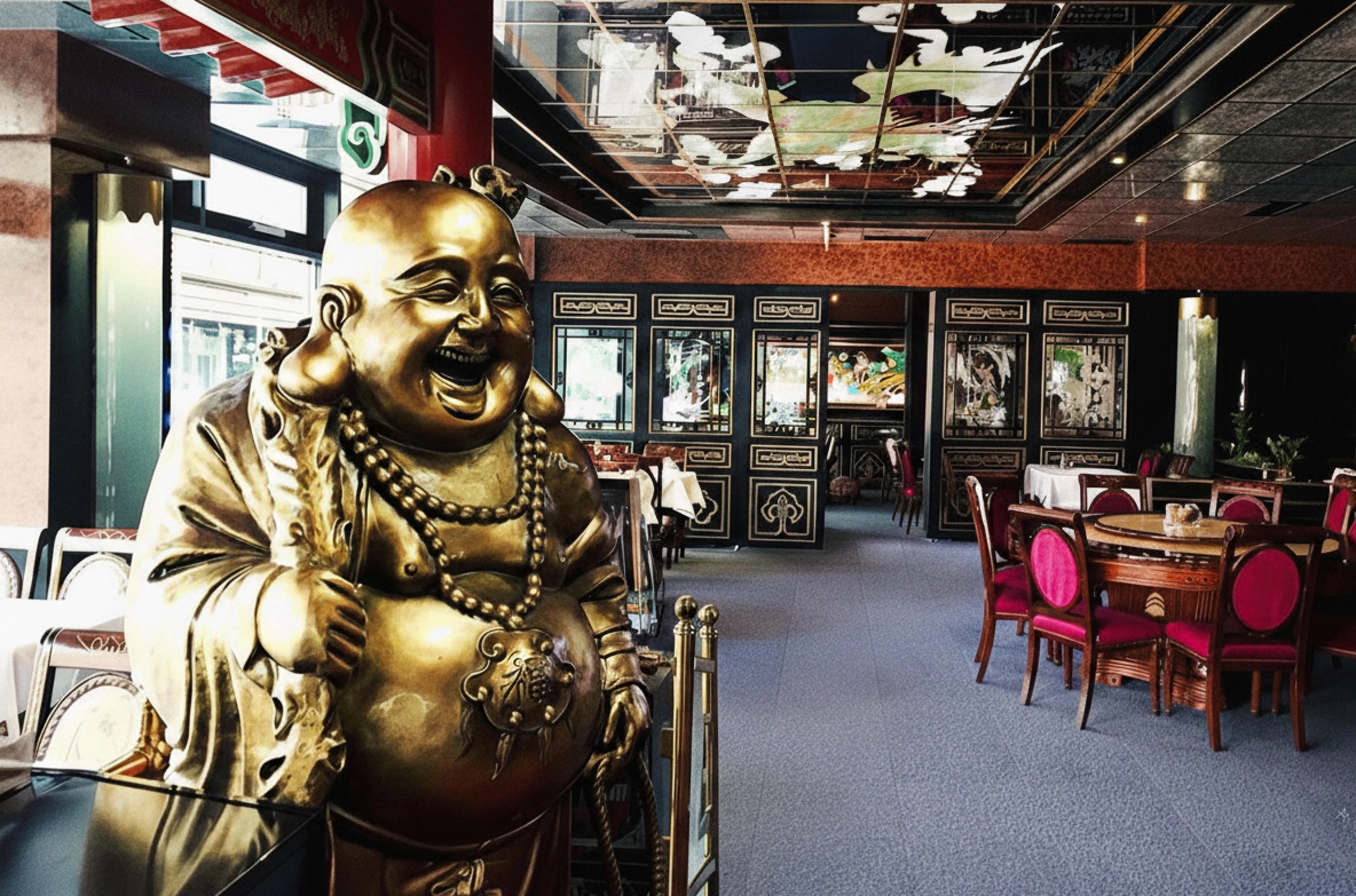 Zwischen glänzenden Lackpaneelen, goldenen Drachenköpfen und tiefroten Samtstühlen fühlt sich jeder Tisch wie eine kleine Bühne an, auf der Geschichten von fernen Städten und alten Legenden leise mitschwingen.