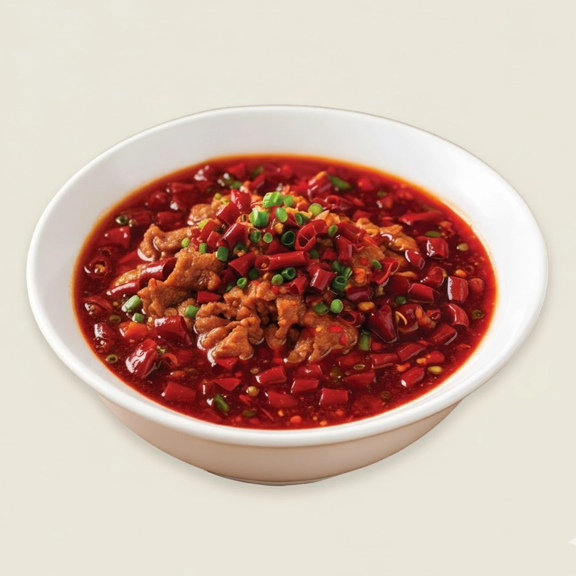 Ein Klassiker der Sichuan-Küche! Zarte Rindfleisch ruhen in einer leuchtend roten Brühe aus Chili, Knoblauch und Sichuanpfeffer.