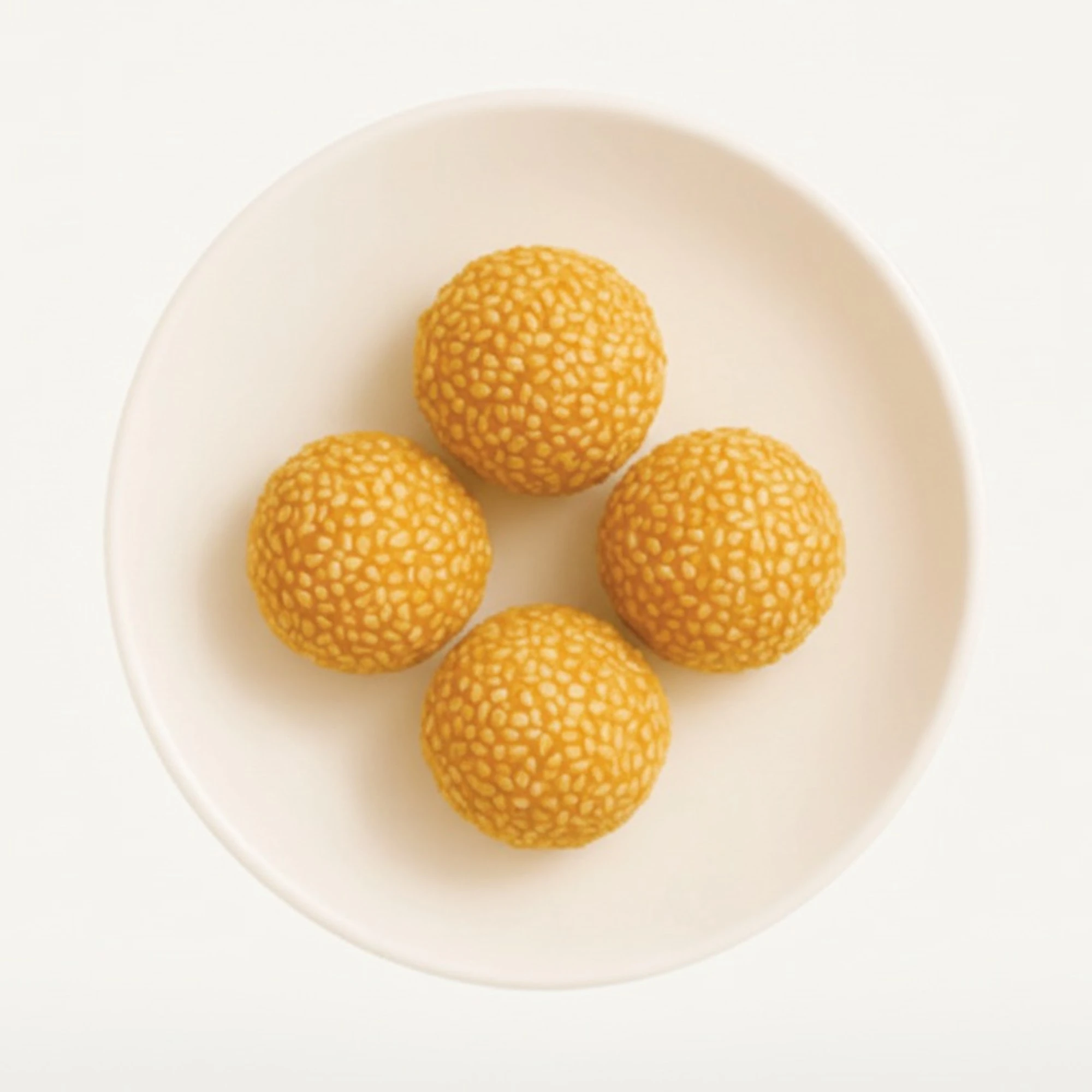 Aus Klebreisteig geformte Bällchen, rundum in Sesam gerollt mit mild-süße Füllung aus roter Bohnenpaste und langsam ausgebacken.